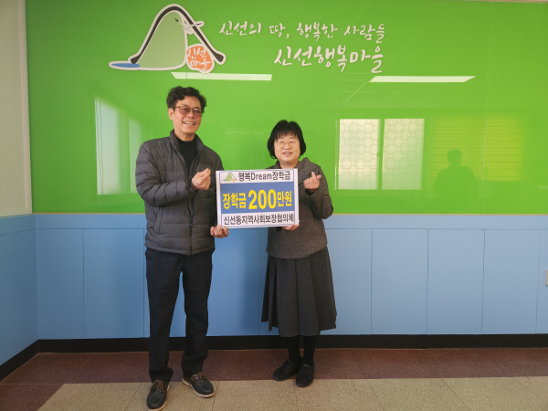 ¿µµµ±¸ ½Å¼±µ¿ Áö¿ª»çȸº¸ÀåÇùÀÇü(¹Î°£À§¿øÀå °íÀç³²)´Â Áö³ 2¿ù 11ÀÏ, Áö¿ªÀÇ ¿ì¼öÇÑ ÀÎÀç À°¼ºÀ» À§ÇØ ´ëÇÐ ÀÔÇÐÀ» ¾ÕµÐ ½ÅÀÔ»ý 2¸í¿¡°Ô ÃÑ 200¸¸ ¿ø(°¢ 100¸¸ ¿ø)ÀÇ ¡®ÇູDream ÀåÇбݡ¯À» Àü´ÞÇß´Ù.