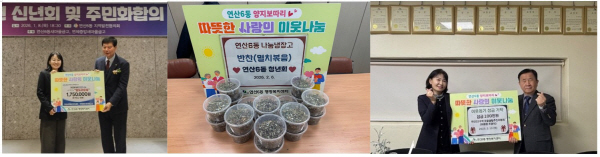 ¿¬Á¦Áß¾Ó»õ¸¶À»±Ý°í(ÀÌ»çÀå ÇÑÁøÇå)´Â »ç¶ûÀÇ Á»µµ¸® ¾ç°î 50Æ÷(175¸¸¿ø »ó´ç)¸¦ ±âŹÇß´Ù. ¿¬Á¦Áß¾Ó»õ¸¶À»±Ý°í´Â ¾î·Á¿î ÀÌ¿ôÀ» À§ÇØ µû¶æÇÑ ¸¶À½À» ¸ð¾Æ ¾ç°îÀ» ÈÄ¿øÇÏ´Â ¡®»ç¶ûÀÇ Á»µµ¸® ¿îµ¿¡¯À» À۳⿡ ÀÌ¾î¼ ¿ÃÇØ¿¡µµ À̾î¿À°í ÀÖÀ¸¸ç, ±âʹÞÀº ¾ç°îÀº °ü³» Àú¼Òµæ 50¼¼´ë¿¡ ¼³ ¸ÂÀÌ ¼ºÇ°À¸·Î Àü´ÞµÆ´Ù.
