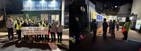 ¼­±¸ µ¿´ë½Å2µ¿ û³âȸ(ȸÀå ±è±â¿¬)¿Í ÀÚÀ²¹æÀç´Ü(´ÜÀå ±èÁ¾´ë) ¹× ºÎ»ê ¼­ºÎ°æÂû¼­´Â Áö³­ 13ÀÏ, ¼³ ¸íÀý Àü ¾ÈÀüÇÑ ¸¶À» Á¶¼ºÀ» À§ÇÏ¿© °ü³» ¾îµÎ¿î °ñ¸ñ±æ ¹× Æó¡¤°ø°¡ µî ¹æ¹ü Ãë¾àÁö¿¡¼­ ÇÕµ¿À¸·Î Ưº° ¹æ¹ü ¼øÂûÀ» ½Ç½ÃÇÏ¿´´Ù.