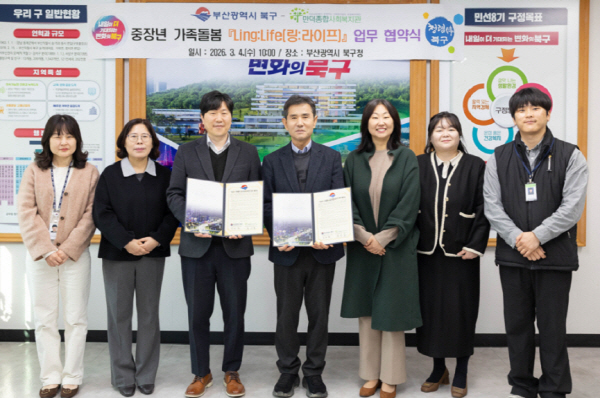 ºÎ»ê ºÏ±¸(±¸Ã»Àå ¿ÀÅ¿ø)´Â 4ÀÏ ¸¸´öÁ¾ÇÕ»çȸº¹Áö°ü(°üÀå Á¤½Å¸ð)°ú °¡Á·µ¹º½ ÁßÀå³â °¡±¸¸¦ Áö¿øÇÏ´Â ¡®Ling:Life(¸µ:¶óÀÌÇÁ)¡¯ »ç¾÷ ÃßÁøÀ» À§ÇÑ ¾÷¹«Çù¾àÀ» ü°áÇß´Ù°í ¹àÇû´Ù.