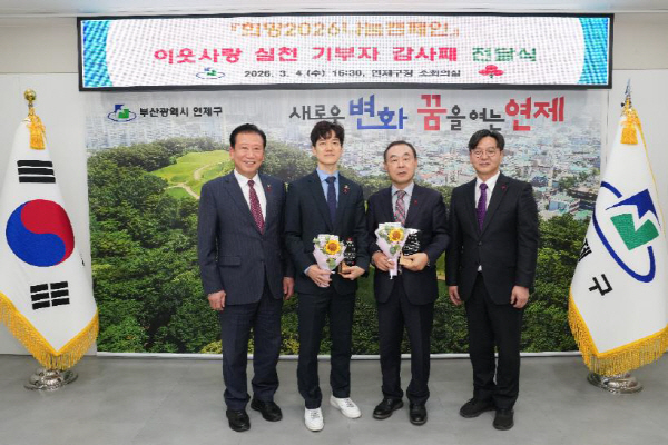 ¿¬Á¦±¸´Â Áö³ 3¿ù 4ÀÏ, ºÎ»ê»çȸº¹Áö°øµ¿¸ð±Ýȸ(ȸÀå À̼öÅÂ)¿Í ÇÔ²² ¡®Èñ¸Á2026³ª´®Ä·ÆäÀÎ ÀÌ¿ô»ç¶û ½Çõ ±âºÎÀÚ¡¯¿¡°Ô °¨»çÆÐ¸¦ Àü´ÞÇß´Ù.