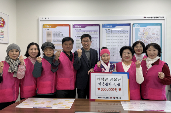 ºÎ»ê ºÏ±¸ ±¸Æ÷1µ¿ ÇàÁ¤º¹Áö¼¾ÅÍ(µ¿Àå À±¼öÂù)´Â Áö³ 6ÀÏ ±¸Æ÷1µ¿ ºñ¼®°ñdz¹°´Ü(´ÜÀå ±èÇý¿Á)ÀÌ °ü³» Ãë¾à°èÃþÀ» À§ÇÑ ÀÌ¿ôµ½±â ¼º±Ý 50¸¸ ¿øÀ» Àü´ÞÇß´Ù°í 9ÀÏ ¹àÇû´Ù.