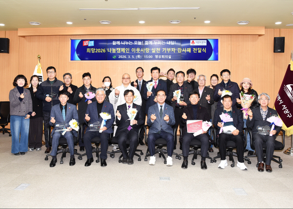 ºÎ»ê »ç»ó±¸(±¸Ã»Àå Á¶º´±æ)´Â Áö³ 5ÀÏ, ¡®Èñ¸Á2026 ³ª´®Ä·ÆäÀΡ¯ ±â°£µ¿¾È ÀÌ¿ô»ç¶ûÀ» ½ÇõÇÑ ±âºÎÀÚµéÀ» ÃÊÃ»ÇØ °¨»çÆÐ ¹× ÇöÆÇ Àü´Þ½ÄÀ» °³ÃÖÇß´Ù.