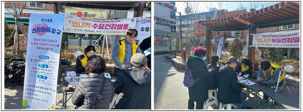 ¿¬Á¦±¸ ¿¬»ê4µ¿(µ¿Àå À̰¡¹Ì)Àº ¸Å¿ù ù° ÁÖ ¼ö¿äÀÏ¿¡ ¿¬ºÀ°ø¿ø ÀÏ´ë¿¡¼ Áö¿ªÁֹεéÀÇ °Ç°ÇÑ »ýȰ ½ÇõÀ» Àå·ÁÇϰí ã¾Æ°¡´Â º¸°Çº¹Áö¼ºñ½º¸¦ Ȱ¼ºÈÇϱâ À§ÇØ ¡®¿¬³ª¸® ¼ö¿ä°Ç°½Ò·Õ¡¯À» ¿î¿µÇϰí ÀÖ´Ù.