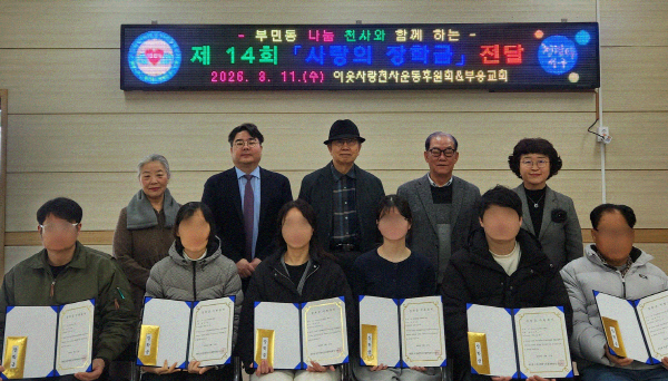 ¼±¸ ºÎ¿ë±³È¸(´ãÀÓ¸ñ»ç À强¿Ï)¿Í ºÎ¹Îµ¿ ÀÌ¿ô»ç¶ûõ»ç¿îµ¿ÈÄ¿øÈ¸(ȸÀå ¹®¼º¿í)´Â 2012³âºÎÅÍ ¸Å³â Áö¿ª Çлýµé¿¡°Ô ÀåÇбÝÀ» Áö¿øÇÏ¿© ²Þ³ª¹«µé¿¡°Ô Å« Èñ¸Á°ú ¿ë±â¸¦ ÁÖ°í ÀÖ´Ù.