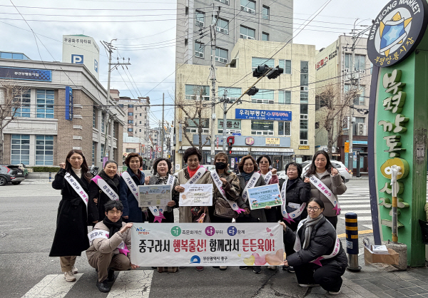 ºÎ»ê Áß±¸(±¸Ã»Àå ÃÖÁøºÀ)¿Í Áß±¸ ¿©¼º´ÜüÇùÀÇȸ(ȸÀå Á¤ÁÖÀ±)´Â Áö³ 6ÀÏ ºÎÆò±øÅë½ÃÀå¿¡¼ ÀúÃâ»ê ±Øº¹°ú Ãâ»ê Ä£ÈÀû »çȸºÐÀ§±â Á¶¼ºÀ» À§ÇÑ Ãâ»êÀå·Á ¡®°¡³ª´ÙÄ·ÆäÀΡ¯(¨¿Á·¹®È °³¼±! ¨ÀºÎÅÍ! ¨ÁÇÔ²²!)À» °³ÃÖÇß´Ù.