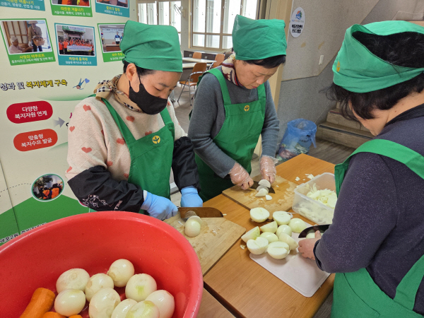 ¡®Á¤¼º°¡µæ µçµç¸ÀÂù(óÊ)¡¯»ç¾÷Àº ¸Å¿ù µÑ° ÁÖ ¸ñ¿äÀϸ¶´Ù ÁøÇàµÇ¸ç, ½Ä»ç Áغñ¿¡ ¾î·Á¿òÀ» °Þ´Â Ãë¾à°èÃþ 25¼¼´ë¿¡ »õ¸¶À»ºÎ³àȸ¿øµéÀÌ Á÷Á¢ Á¶¸®ÇÑ °¡Á¤½Ä ¹Ø¹ÝÂùÀ» Àü´ÞÇÏ´Â »ç¾÷ÀÌ´Ù.