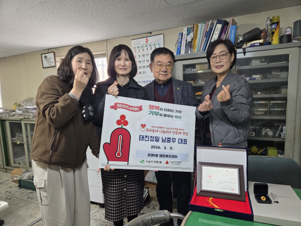 ºÎ»ê »ç»ó±¸ ÁÖ·Ê1µ¿(µ¿Àå ¼ºÀ¼±)Àº Áö³ 11ÀÏ »ç»ó±¸ ¼ÒÀç ±â¾÷ ÅÂÁøÁ¤¹Ð ³²Áß¿ì ´ëÇ¥¿¡°Ô ¡®³ª´®¸®´õ ÀÎÁõÆÐ¡¯¸¦ Àü´ÞÇß´Ù°í 18ÀÏ ¹àÇû´Ù.