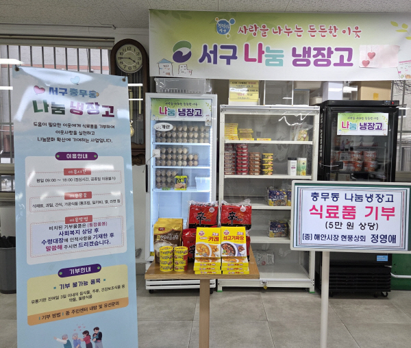 ºÎ»ê ¼±¸ Ãæ¹«µ¿ ÇØ¾È½ÃÀå Çödz»óȸ(´ëÇ¥ Á¤¿µ¾Ö)´Â Áö³ 18ÀÏ ³ª´® ³ÃÀå°í¿¡ 5¸¸ ¿ø »ó´çÀÇ ½Ä·áǰÀ» ±âºÎÇÏ¸ç µû¶æÇÑ ³ª´®À» ½ÇõÇß´Ù.