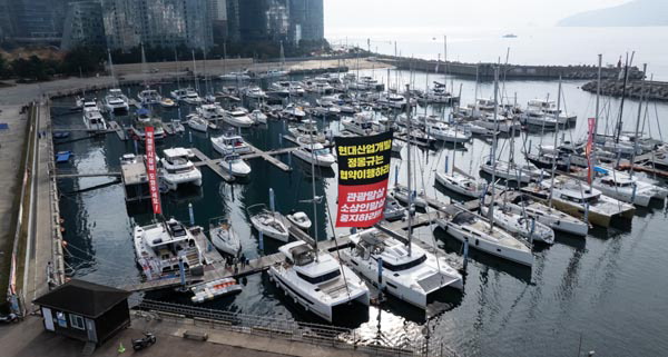 Áö³­ÇØ 11¿ù ºÎ»ê ÇØ¿î´ë±¸ ¼ö¿µ¸¸¿äÆ®°æ±âÀå¿¡ ¿äÆ®»ç¾÷ °ü°èÀÚµéÀÌ Àç°³¹ß¿¡ ¹Ý´ëÇÏ´Â Çö¼ö¸·À» ³»°É°í ÀÖ´Ù. ±¹Á¦½Å¹®DB