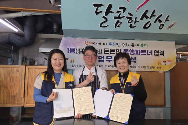 ºÎ»ê »ç»ó±¸ ´öÆ÷1µ¿(µ¿Àå ±è¼ö¸²)Àº Áö³ 27ÀÏ ÈÄ¿ø¾÷ü ´ÞÄÞÇÑ »ó»ó(´ëÇ¥ ÀÌÈ£¼®) ¹× ´öÆ÷1µ¿ Áö¿ª»çȸº¸ÀåÇùÀÇü¿Í ¡®µçµçÇÑ µ¿ÇàÆÄÆ®³Ê¡¯¶ó´Â ½½·Î°Ç ¾Æ·¡ Ãë¾à°¡±¸ Á¤¼Àû Áö¿ø»ç¾÷ ÃßÁøÀ» À§ÇÑ ¾÷¹«Çù¾àÀ» ü°áÇß´Ù°í ¹àÇû´Ù.
