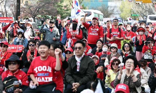 À±¼®¿­ Àü ´ëÅë·ÉÀÌ ÅºÇÙµÈ Áö 1³âÀÌ µÇ´Â 4ÀÏ ¼­¿ï Á¾·Î±¸ ¾È±¹¿ª 5¹ø Ãⱸ ¾Õ¿¡¼­ À± Àü ´ëÅë·É ÁöÁöÀÚµéÀÌ ¡®À± ¾î°ÔÀÎ Áýȸ¡¯¸¦ Çϰí ÀÖ´Ù. ¿¬ÇÕ´º½º
