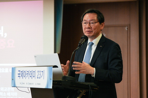 Áö³ 22ÀÏ ºÎ»ê·Ôµ¥È£ÅÚ¿¡¼ ÁøÇàµÈ ±¹Á¦¾ÆÄ«µ¥¹Ì 23±â 6ÁÖ Â÷ °¿¬ÀÚ·Î ³ª¼± ÀåÁ¦±¹ µ¿¼´ëÇб³ ÃÑÀåÀº ÃÖ±Ù ÀÏ¾î³ ¹Ì±¹-À̶õ ÀüÀï, ·¯½Ã¾Æ-¿ìÅ©¶óÀ̳ª ÀüÀï, ¹Ì±¹ÀÇ ÀϹæÀûÀÎ °ü¼¼ ºÎ°ú µî ±¹Á¦ Á¤¼¼¿¡ ´ëÇØ ÀÌ·¸°Ô ¼³¸íÇß´Ù. Àå ÃÑÀåÀº À̳¯ ¡®°Ýµ¿ÀÇ ±¹Á¦ Á¤¼¼ - ȸ±ÍÀÇ ±¹Á¦°ü°è¡¯¸¦ ÁÖÁ¦·Î, ¹Ì¡¤Áß °¥µî¿¡ ´ëÇØ ´ëÇѹα¹ÀÌ °¡Á®¾ß ÇÒ »ýÁ¸ Àü·«À» Á¦½ÃÇß´Ù.