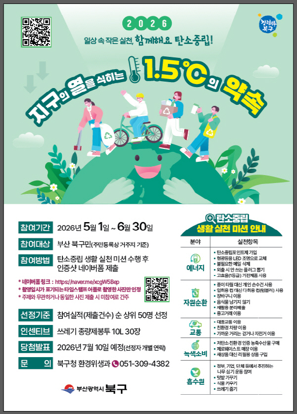 ºÎ»ê ºÏ±¸¿¡ Áֹεî·ÏÀÌ µÇ¾î ÀÖ´Â ±¸¹ÎÀÌ¸é ´©±¸³ª Âü¿©ÇÒ ¼ö ÀÖÀ¸¸ç, Âü¿©½ÇÀûÀÌ ¿ì¼öÇÑ 100¸í(°¢ ȸ´ç 50¸í)À» ¼±Á¤ÇØ 10L Á¾·®Á¦ºÀÅõ 30Àå(1¸¸ ¿ø »ó´ç)À» Áö±ÞÇÒ ¿¹Á¤ÀÌ´Ù.