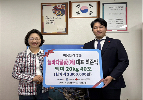 ºÎ»ê±¤¿ª½Ã ¼ö¿µ±¸(±¸Ã»Àå ±ÇÇÑ´ëÇà Á¤¿µ¶õ)´Â Áö³­ 27ÀÏ ´Ã¹Ù´Ùǰäñ(¾Ö)(´ëÇ¥ ÃÖÁØÀÍ)·ÎºÎÅÍ °³¾÷±â³äÀ¸·Î ¹ÞÀº ¹é¹Ì 20kg 40Æ÷(ȯ°¡¾× 280¸¸ ¿ø)¸¦ Ãë¾à°èÃþ ÁֹΠÁö¿øÀ» À§ÇØ ±âŹ¹Þ¾Ò´Ù.