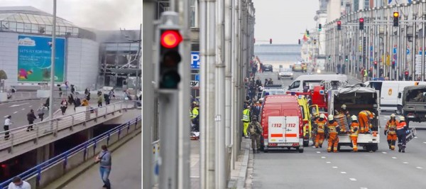 22ÀÏ ¿ÀÀü(ÇöÁö½Ã°¢) º§±â¿¡ ºê·ò¼¿ ÀÚº¥ÅÛ ±¹Á¦°øÇ׿¡¼ ÆøÅº Å×·¯·Î ¿¬±â°¡ ÇǾî¿À¸£°í ÀÖ´Ù(¿ÞÂÊ). À̳¯ ¶Ç´Ù¸¥ ÆøÅºÅ×·¯°¡ ¹ß»ýÇÑ ¸»º£ÀÌÅ© ÁöÇÏö¿ª ¾Õ µµ·Î¿¡¼ ±¸Á¶´ë¿øµéÀÌ ÅõÀÔ Áغñ¸¦ Çϰí ÀÖ´Ù. Æ®À§ÅÍ Ä¸ÃÄ¡¤½ÅÈ ¿¬ÇÕ´º½º