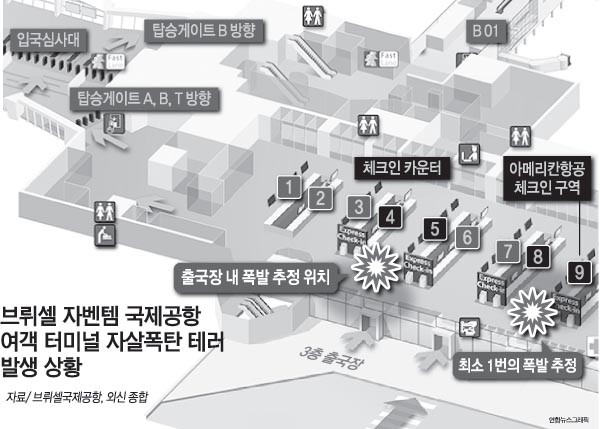 22ÀÏ(ÇöÁö½Ã°£) º§±â¿¡ ºê·ò¼¿ÀÇ ±¹Á¦°øÇ׿¡¼ ÀÚÆø Å×·¯°¡ ¹ß»ýÇÏ°í ºê·ò¼¿ ½Ã³» ÁöÇÏö¿ª¿¡¼ Æø¹ßÀÌ ÀϾ 30¿© ¸íÀÌ »ç¸ÁÇß´Ù.