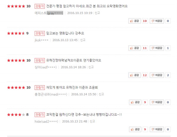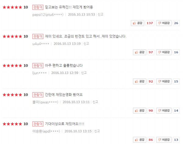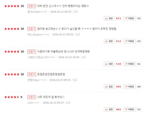 ´©¸®²ÛµéÀº "´ë¹Ú ¿ÏÀü ½Å³ª°Ô¤» ÁøÂ¥ »§»§ ÅÍÁö´Â ¿µÈ¤»(rhdd****)", "ÀÌÈ¥À§±â·Î ¿ì¿ïÇߴµ¥ Àá½Ã³ª¸¶ ÀØ°Ô ÇØÁØ ¿µÈ(jm78****)", "Àü¹®°¡ ÆòÁ¡ Âü°íÇÏÁö ¸¶¼¼¿ä. ÃÖ±Ù º» ÃÖ°íÀÇ ¿À¶ô¿µÈ¿´¾î¿ä((gray****)" µîÀÇ ±àÁ¤ÀûÀÎ ¹ÝÀÀÀ» º¸¿´´Ù.