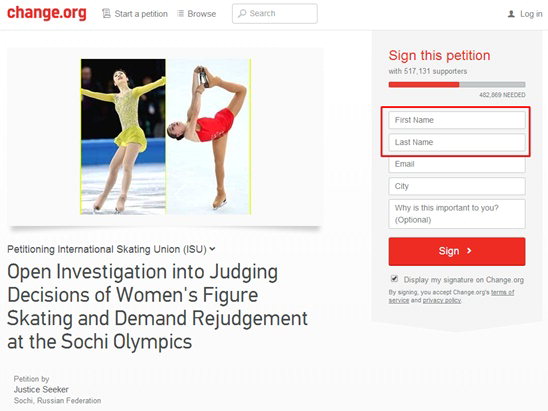 | ISU Á¦¼Ò¸¦ ÃßÁøÇÏ´Â ±è¿¬¾Æ ¼¸í¿îµ¿. (»çÁø='Change.org' »çÀÌÆ® ĸó) |