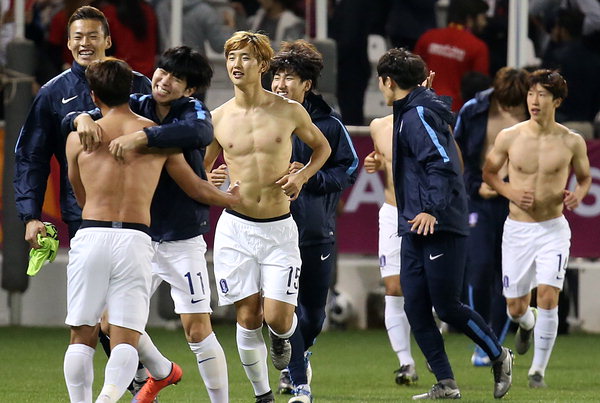 | 27ÀÏ »õº® īŸ¸£ µµÇÏ ¾Ë »çµå ½ºÆ÷Ã÷Ŭ·´¿¡¼ ¿¸° 2016 ¾Æ½Ã¾ÆÃ౸¿¬¸Í(AFC) U-23 èÇǾð½Ê 4°Àü īŸ¸£¿ÍÀÇ °æ±â¿¡¼ 3-1·Î ½Â¸®ÇÑ ´ëÇѹα¹ ¼±¼öµéÀÌ ÀÀ¿ø ¿Â ±³¹Îµé¿¡°Ô À¯´ÏÆûÀ» ÁØ ÈÄ ±â»µÇϰí ÀÖ´Ù. ¿¬ÇÕ´º½º |