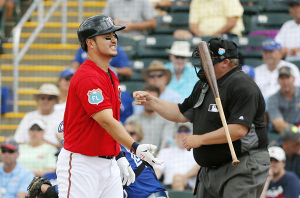 | 31ÀÏ(Çѱ¹½Ã°£) ¹Ì±¹ Ç÷θ®´Ù ÁÖ Æ÷Æ® ¸¶À̾ ¼¾Ã߸®¸µÅ© ½ºÆ÷Ã÷ ÄÞÇ÷º½º¿¡¼ ¿¸° ¹Ì±¹ÇÁ·Î¾ß±¸(MLB) ¹Ì³×¼ÒŸ Æ®À©½º¿Í Åä·ÐÅä ºí·çÁ¦À̽ºÀÇ ½Ã¹ü°æ±â¿¡ ¼±¹ß ÃâÀüÇÑ ¹Úº´È£°¡ »ïÁøÀ» ´çÇÑ µÚ ¹èÆ®¸¦ ´øÁö°í ÀÖ´Ù. AP ¿¬ÇÕ´º½º |