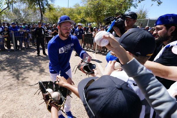 | ¹Ì±¹ÇÁ·Î¾ß±¸ ¸ÞÀÌÀú¸®±× LA ´ÙÀú½ºÀÇ °³ºó ·°½º°¡ Áö³ 13ÀÏ(ÇöÁö½Ã°£) ½ºÇÁ¸µÄ·ÇÁ¿¡¼ ÈÆ·ÃÀ» ¸¶Ä£ µÚ ÆÒµé¿¡°Ô »çÀÎÀ» ÇØÁÖ°í ÀÖ´Ù. AP ¿¬ÇÕ´º½º |