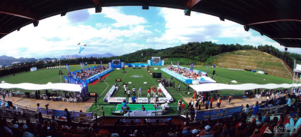 ±èµÎ°â ¿ï»ê½ÃÀåÀº ¡°À̹ø ´ëȸ´Â ¿ï»êÀÌ ÀüÅë°ú Çö´ë°¡ Á¶È¸¦ ÀÌ·ç´Â ±Û·Î¹ú ½ºÆ÷Ã÷ Á߽ɵµ½Ã·Î ¹ßµ¸¿òÇÏ´Â °è±â¡±¶ó¸ç ¡°±ÃµµÀÇ ¼¼°èȸ¦ ¼±µµÇÏ°í ¿ï»êÀÇ ºê·£µå °¡Ä¡¸¦ ³ôÀ̰ڴ١±°í ¸»Çß´Ù.