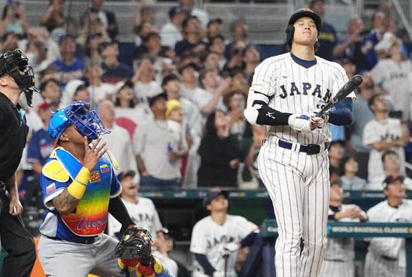 | ÀϺ» ¾ß±¸ÆÀ ¿ÀŸ´Ï ¼îÇìÀ̰¡ 15ÀÏ(Çѱ¹½Ã°£) WBC 8°Àü º£³×¼ö¿¤¶ó¿ÍÀÇ °æ±â¿¡¼ 9ȸ ¸» ¾Æ¿ôµÈ ÈÄ ¾Æ½¬¿öÇϰí ÀÖ´Ù. AP¿¬ÇÕ´º½º |