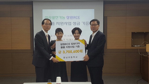 °æ³² â¿ø½Ã ¿õ³²ÃʵîÇб³(±³Àå ¹è¿µÇÑ)¿Í Çкθðȸ´Â Áö³­ 4ÀÏ Ã¢¿øRCE(Áö¼Ó°¡´É¹ßÀü°ÅÁ¡¼¾ÅÍ)¸¦ ¹æ¹®ÇØ '¿õ³²¸¶Äϵ¥ÀÌ' ¼öÀÍ±Ý 370¸¸ ¿øÀ» Àü´ÞÇß´Ù.