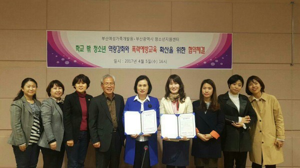 ºÎ»ê¿©¼º°¡Á·°³¹ß¿ø(¿øÀå ±è¸§ÀÌ)°ú ºÎ»ê±¤¿ª½Ã û¼Ò³âÁö¿ø¼¾ÅÍ(¼¾ÅÍÀå ¹éÁø¿µ)´Â Áö³ 5ÀÏ Çб³ ¹Û û¼Ò³â ¿ª·®°È¿Í Æø·Â¿¹¹æ±³À° È®»êÀ» À§ÇÑ ¾÷¹«Çù¾àÀ» ü°áÇß´Ù.