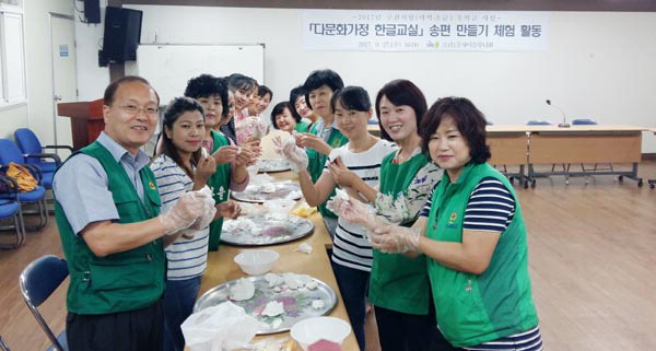 ºÎ»ê »ç»ó±¸ ¸ð¶ó1µ¿ Áֹμ¾ÅÍ(µ¿Àå ÀÌÀº±Ô)¿Í »õ¸¶À»ºÎ³àȸ(ȸÀå ¹èÀÎÀÚ)´Â Áö³­´Þ 27ÀÏ ´Ù¹®È­°¡Á¤ Çѱ۱³½Ç ÀÌÁÖ¿©¼º°ú ¼ÛÆí ¸¸µé±â üÇè Çà»ç¸¦ Çß´Ù.