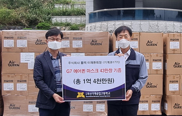 ºÎ»ê±â°è°ø°í 17ȸ Á¹¾÷»ý(±â°è°ú)ÀÎ ¢ßÅéÅØ ÀÌÀçȯ ȸÀåÀº Áö³ 8ÀÏ ¸ð±³ ±³Á÷¿ø°ú ÈĹèµéÀÌ ½á´Þ¶ó¸ç Àڻ簡 °³¹ß Á¦Á¶ÇÑ ¸¶½ºÅ© 43¸¸ Àå(1¾ï4000¸¸ ¿ø »ó´ç)À» Ãѵ¿Ã¢È¸¸¦ ÅëÇØ Çб³¿¡ Àü´ÞÇß´Ù.