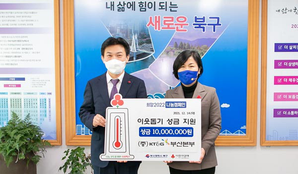 KT&G ºÎ»êº»ºÎ(º»ºÎÀå ±èÁø¹Î)´Â Áö³ 14ÀÏ ºÎ»ê ºÏ±¸(±¸Ã»Àå Á¤¸íÈñ)¿¡ ÀÌ¿ôµ½±â ¼º±Ý 1000¸¸ ¿øÀ» Àü´ÞÇß´Ù.