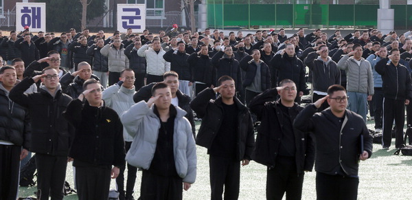 5ÀÏ °æ³² â¿ø½Ã ÁøÇر¸ ÇØ±º±³À°»ç·ÉºÎ ¿¬º´Àå¿¡¼­ ¿­¸° ÇØ±ºº´ 721±â ÀÔ¿µ½Ä¿¡¼­ ÇØ±ºº´µéÀÌ °æ·ÊÇϰí ÀÖ´Ù. À̳¯ ÀÔ´ëÇÑ ÇØ±ºº´Àº 5ÁÖ°£ÀÇ ¾ç¼º ±³À°ÈÆ·Ã °úÁ¤À» À̼öÇÏ°í ¿À´Â 2¿ù 6ÀÏ ¼ö·áÇÑ´Ù. ¿¬ÇÕ´º½º