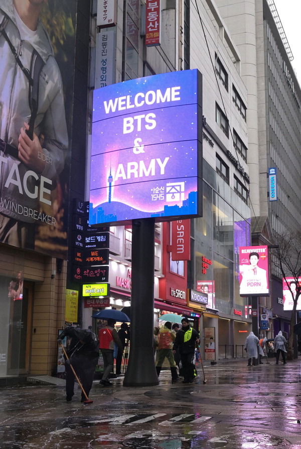 ¹æÅº¼Ò³â´Ü(BTS) ¼­¿ï ±¤È­¹® °ø¿¬À» ÀÌÆ² ¾ÕµÐ 19ÀÏ Á¾·Î±¸ ±¤È­¹®±¤Àå¿¡ ¼³Ä¡µÈ °ø¿¬ ¹«´ë(À§ »çÁø)¿Í ¸íµ¿ °Å¸® ¹Ìµð¾î Æú¿¡¼­ BTS ȯ¿µ ¿µ»óÀÌ ¼ÛÃâµÇ´Â ¸ð½À. ¿¬ÇÕ´º½º