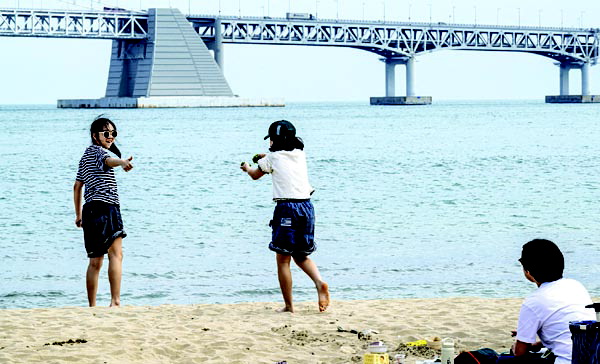13ÀÏ ºÎ»ê ¼ö¿µ±¸ ±¤¾È¸®Çؼö¿åÀåÀ» ãÀº ½Ã¹ÎÀÌ ¹ÝÆÈ, ¹Ý¹ÙÁö µî °¡º­¿î ¿ÊÂ÷¸²À¸·Î ȭâÇÑ º½ ³¯¾¾¸¦ Áñ±â°í ÀÖ´Ù.