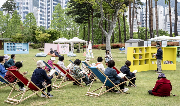 29ÀÏ ºÎ»ê ºÎ»êÁø±¸ ºÎ»ê½Ã¹Î°ø¿ø ¹æ¹®ÀÚ¼¾ÅÍ ¾Õ¿¡ ¡®Àܵð¹ç µµ¼°ü¡¯ÀÌ ¸¶·ÃµÅ ½Ã¹ÎÀÌ µ¶¼¸¦ Çϰí ÀÖ´Ù. µµ¼°ü¿¡´Â ¿¡¼¼ÀÌ¿Í ¹®ÇÐ, À¥Å÷ ¸¸È µî ´Ù¾çÇÑ À帣ÀÇ Ã¥ 2600¿© ±ÇÀÌ ºñÄ¡µÇ¸ç, ¿À´Â 6¿ù 14ÀϱîÁö ¸ÅÁÖ ¼ö~ÀÏ¿äÀÏ ¿ÀÀü 11½ÃºÎÅÍ ¿ÀÈÄ 6½Ã±îÁö ÀÌ¿ë °¡´ÉÇÏ´Ù.