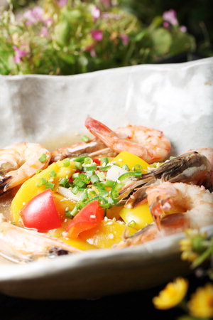 4. °¡¿µÈ ÆÒ¿¡ Âü±â¸§À» µÎ¸£°í ¾çÆÄ¿Í ÇǸÁÀ» ºº´Ù°¡ »õ¿ì, û¾çÃÊ, ¾ç³ä, ¾àÃÊ ¹° 1/2ÄÅÀ» º×°í Á¹ÀδÙ. ±× µÚ ¸Á°í¿Í Àܯď¦ ³Ö°í Á¶±Ý ´õ Á¶¸°´Ù.
