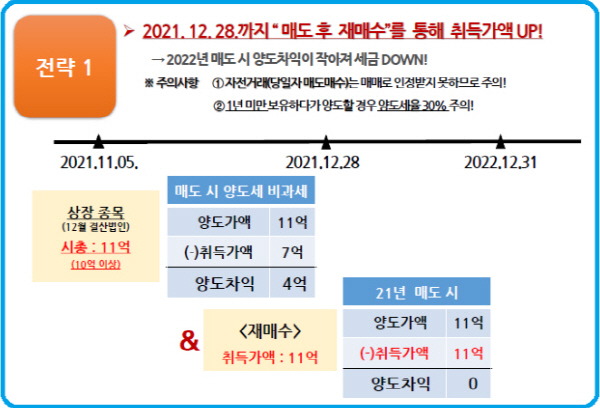 º¸À¯Çϰí ÀÖ´Â Áֽİú °ü·ÃÇØ ±â¾÷ÀÇ Àü¸ÁÀÌ Àå¹ÔºûÀ̶ó °è¼Ó º¸À¯ÇÏ°í ½ÍÁö¸¸ ´ëÁÖÁÖ ±âÁØÀ» ³ÑÀ» °Í °°Àº °æ¿ì¿¡´Â ¿ÃÇØ 28ÀϱîÁö ¸Åµµ ÈÄ Àç¸Å¼ö¸¦ ÅëÇØ Ãëµæ°¡¾×À» ¿Ã¸®´Â ¹æ¹ýµµ ÀÖ´Ù. ³»³âÀÎ 2022³â¿¡ ¸Åµµ ½Ã ¾çµµÂ÷ÀÍÀÌ ÀÛ¾ÆÁ® ºÎ´ãÇÏ´Â ¼¼±ÝÀÌ ÁÙ¾îµé±â ¶§¹®ÀÌ´Ù. ´Ü ±â¾ïÇÒ Á¡Àº ´çÀÏ ÀÚ ¸Åµµ¸Å¼ö´Â ÀÚÀü °Å·¡À̱⠶§¹®¿¡ ´ëÁÖÁÖ¿ä°ÇÀ» ÇÇÇØ°¡´Â ¸Å¸Å·Î ÀÎÁ¤¹ÞÁö ¸øÇÑ´Ù. ¶ÇÇÑ ¸Å¼ö ÈÄ 1³â ¹Ì¸¸ º¸À¯ÇÏ´Ù ¾çµµÇÒ °æ¿ì ´ëÁÖÁÖ Áß¼Ò±â¾÷ ¿Ü ÁֽĿ¡ ÇØ´çµÇ´Â °æ¿ì¿¡´Â 30%ÀÇ ¾çµµ¼¼À² ±¸°£¿¡ µé¾î°¥ ¼ö Àֱ⿡ ÁÖÀǸ¦ ¿äÇÑ´Ù.
