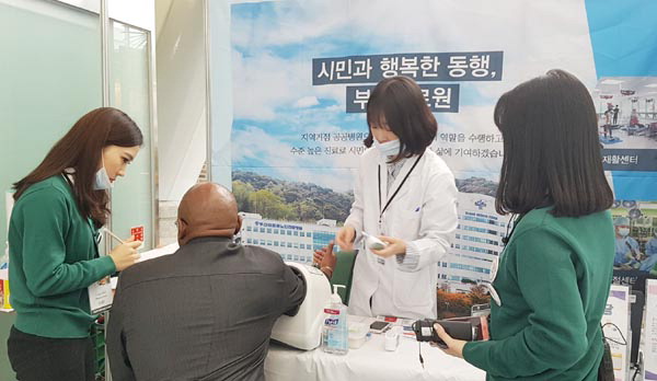 ºÎ»êÀÇ·á¿ø(¿øÀå ÃÖâÈ)Àº Áö³ 21ÀϺÎÅÍ 25ÀϱîÁö ÇØ¿î´ë±¸ º¤½ºÄÚ¿¡¼ ¿¸° ¡®2018 ¾ÆÇÁ¸®Ä«°³¹ßÀºÇà(AfDB) ¿¬Â÷ÃÑȸ¡¯ Âü°¡ÀÚÀÇ ¾ÈÀüÀ» À§ÇØ ÀÇ·áÁö¿ø(»çÁø)À» Çϰí ÀÖ´Ù. ºÎ»êÀÇ·á¿øÀº ±âȹÀçÁ¤ºÎ ¿äû¿¡ µû¶ó °ø½Ä ÀÇ·á±â°üÀ¸·Î¼ Çà»ç ±â°£ ÇöÀåÀÇ ÀÀ±Þ»óȲ¿¡ ´ëºñÇØ ÃÑ 20¸íÀÇ ÀÇ·áÁö¿ø¹ÝÀ» ±¸¼ºÇß´Ù.