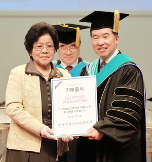 | Áö³ 3ÀÏ °í½Å´ëÇб³¿¡ 1¾ï ¿øÀ» ±âŹÇÑ ¼Û»ê¹ÚÀç¼®¹®ÈÀåÇÐȸ À̱ÝÁö(¿ÞÂÊ) ÀÌ»çÀå. |