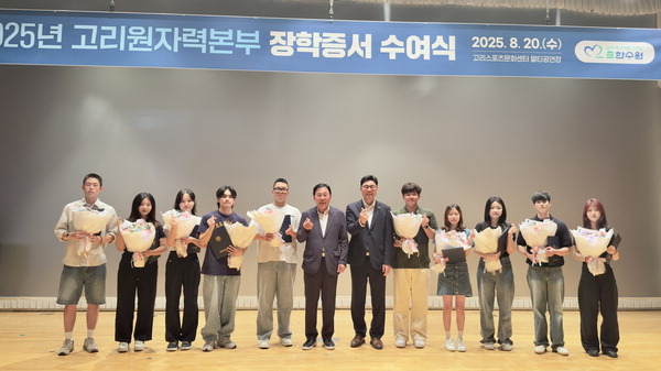 Çѱ¹¼ö·Â¿øÀÚ·Â °í¸®¿øÀڷº»ºÎ(º»ºÎÀå ÀÌ»ó¿í)´Â ¹ßÀü¼Ò ÁÖº¯ Áö¿ª ÇлýÀÇ ¾ÈÁ¤Àû Çо÷ ¿©°Ç Áö¿ø°ú ¿ì¼ö ÀÎÀç À°¼ºÀ» À§ÇØ ¡®2025³â °í¸®¿øÀڷº»ºÎ ÀåÇлý¡¯ ÃÑ 263¸í(´ëÇлý 210¸í, °íµîÇлý 39¸í, üÀ°Æ¯±â»ý 14¸í)À» ¼±¹ßÇϰí, Áö³ 20ÀÏ °í¸®½ºÆ÷Ã÷¹®È¼¾ÅÍ 1Ãþ ¸ÖƼ°ø¿¬Àå¿¡¼ ¡®2025³â ÀåÇÐÁõ¼ ¼ö¿©½Ä¡¯(»çÁø)À» ¿¾ú´Ù.