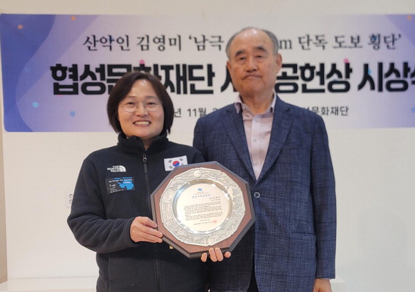 Çù¼º¹®È­Àç´ÜÀº ³²±Ø´ë·úÀ» ´Üµ¶À¸·Î µµº¸ Ⱦ´ÜÇÑ »ê¾ÇÀÎ ±è¿µ¹Ì(45) ´ëÀå¿¡°Ô 20ÀÏ Çù¼º»çȸ°øÇå»óÀ» ½Ã»óÇß´Ù. ±è ´ëÀåÀº ¼¼°è 7´ë·ú ÃÖ°íºÀ ¿Ïµî°ú È÷¸»¶ó¾ß¿Í ±ØÁö¸¦ ¾Æ¿ì¸£´Â ŽÇèȰµ¿À» 23³â° Áö¼ÓÇÏ¸ç ¿ÃÇØ 1¿ù ¾Æ½Ã¾Æ ÃÖÃÊ·Î ³²±Ø´ë·ú ´Üµ¶ µµº¸ Ⱦ´Ü(69ÀÏ, 1786§°)¿¡ ¼º°øÇÑ °ø·Î·Î ¼ö»ó ¿µ±¤À» ¾È¾Ò´Ù.