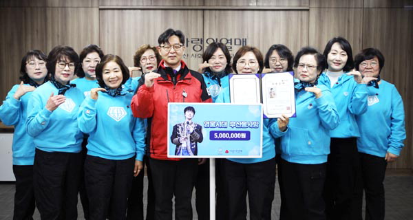 ÀÓ¿µ¿õ ÆÒŬ·´ ¿µ¿õ½Ã´ë ºÎ»êºÀ»ç¹æ ȸ¿øµéÀÌ 10ÀÏ ¿¬¸»À» ¸Â¾Æ ºÎ»ê»çȸº¹Áö°øµ¿¸ð±Ýȸ(ºÎ»ê»ç¶ûÀÇ¿­¸Å)¿¡ ÀÌ¿ôµ½±â ¼º±Ý 500¸¸ ¿øÀ» Àü´Þ(»çÁø)Çß´Ù.