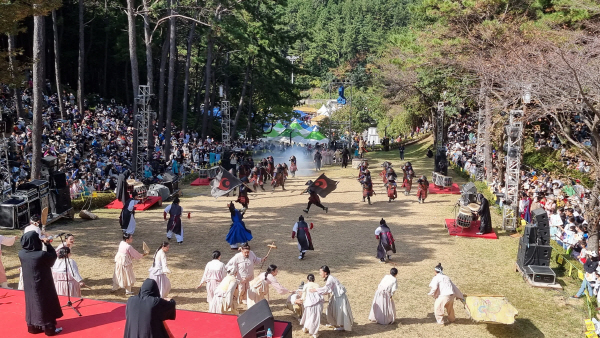 ÃàÁ¦ÀÇ ÇÏÀ̶óÀÌÆ® ¡®µ¿·¡¼º ÀüÅõ ÀçÇö ¹ÂÁöÄá¯Àº ¿ÀÈÄ 6½Ã 20ºÐ ºÏ¹® ¾ð´ö¿¡¼ ÆîÃÄÁø´Ù. 1592³â ÀÓÁø¿Ö¶õ ´ç½Ã ¿Ö±º°ú ¸Â¼ ½Î¿î ¼Û»óÇö µ¿·¡ºÎ»ç¿Í µ¿·¡À¾¼º¹ÎÀÇ °á»ç Ç×ÀüÀ» ÀçÇöÇÑ ½Ç°æ ¹ÂÁöÄÃÀÌ´Ù. ÀÌÈÄ ¿ÀÈÄ 7½Ã 25ºÐ °³¸· ÃàÇϰø¿¬À» ½ÃÀÛÀ¸·Î »çÈê°£ÀÇ ÃàÁ¦°¡ º»°ÝÀûÀ¸·Î ½ÃÀÛÇÑ´Ù.