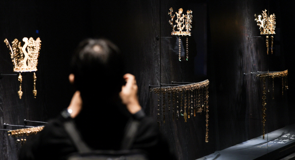½Å¶óÀÇ È²±Ý¹®È´Â ±è¾¾ ¿ÕÀ§ µ¶Á¡ ¼¼½ÀÀÌ È®¸³µÈ ¸¶¸³°£ ½Ã´ëÀÇ »ê¹°ÀÌ¶ó ¿©°ÜÁø´Ù. µå¶ó¸¶ ¡®¼±´ö¿©¿Õ¡¯¿¡¼ ´ö¸¸ÀÌ ½è´ø ±Ý°üÀº ¿ª»çÀû »ç½Ç°ú °Å¸®°¡ ¸Ö´Ù. ÇöÁ¸ÇÏ´Â 6°³ ±Ý°üÀº ³»¹°(356~402³â)¡¤½Ç¼º(402~417³â)¡¤´Áö(417~458³â)¡¤ÀÚºñ(458~479³â)¡¤¼ÒÁö(479~500³â)¡¤ÁöÁõ(500~514³â) ¸¶¸³°£ ¿¬°£¿¡ ¸¸µé¾îÁø °ÍÀ¸·Î º¸ÀδÙ. ±Ý°üÀº ¿ÕÀÇ ±Ç·Â°ú ½Å¼ºÀÇ »ó¡¹°À̾ú´Ù. ±Ý°üÀÇ ³ª¹µ°¡Áö¿Í »ç½¿»Ô ¸ð¾ç ¼¼¿ò Àå½ÄÀº Çϴðú ¶¥À» ÀÕ´Â ¸Å°³Ã¼¸¦ Çü»óÈÇß´Ù. »õ´Â Áö»ó°ú õ»óÀ» ¿¬°áÇÏ´Â Àü·ÉÀ¸·Î ¿©°ÜÁø´Ù. ¶ÇÇÑ °öÀº¿Á(°î¿Á)°ú ´Ù¾çÇÑ ´Þ°³´Â »ý¸í·Â°ú ¿µ¿ø¼ºÀ», Ȳ±ÝºûÀº Àý´ë ±Ç·ÂÀ» »ó¡ÇÑ´Ù.