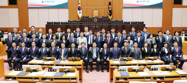 | Áö³ÇØ 7¿ù 5ÀÏ ºÎ»ê½ÃÀÇȸ¿¡¼ ¿¸° Á¦9´ë ½ÃÀÇȸ °³¿ø½Ä¿¡¼ ÀÇ¿øµéÀÌ ±â³ä ÃÔ¿µÀ» Çϰí ÀÖ´Ù. ºÎ»ê½ÃÀÇȸ Á¦°ø |