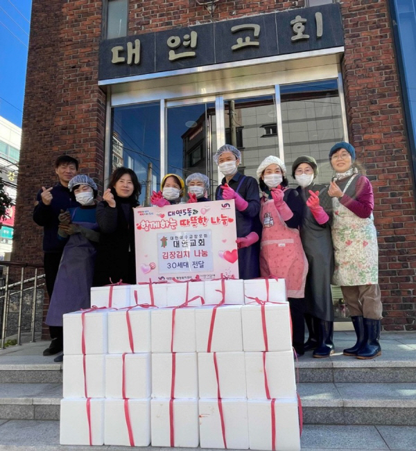 ºÎ»ê ³²±¸ ´ë¿¬±³È¸(¸ñ»ç Àü½Â¸¸)´Â Áö³ 12¿ù 3ÀÏ, °Ü¿ïöÀ» ¾Õµå°í Áö¿ª »çȸ¿¡ µû¶æÇÑ ¿ÂÁ¤À» ³ª´©±â À§ÇØ ¡®»ç¶ûÀÇ ±èÀå ±èÄ¡ ³ª´® Çà»ç¡¯¸¦ °³ÃÖÇß´Ù. ±³È¸´Â ÀÚüÀûÀ¸·Î ÁغñÇØ Á¤¼º²¯ ´ã±Ù ±èÀå ±èÄ¡ 30¹Ú½º¸¦ ´ë¿¬5µ¿ ÇàÁ¤º¹Áö¼¾ÅÍ¿¡ ÈÄ¿øÇß´Ù.