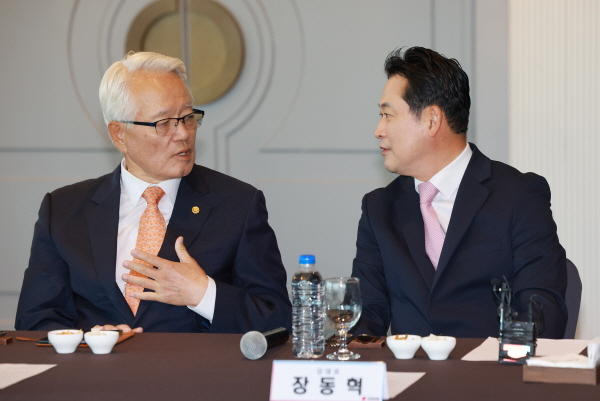 ±¹¹ÎÀÇÈû À嵿Çõ ´ëÇ¥°¡ 13ÀÏ ¼­¿ï ¿µµîÆ÷±¸ ¿©Àǵµ ÇÑ Á߽Ĵ翡¼­ ¿­¸° ±¹¹ÎÀÇÈû »óÀÓ°í¹®´Ü ȸÀÇ¿¡ Âü¼®ÇØ °í¹®´Ü ȸÀåÀÎ Á¤ÀÇÈ­ Àü ±¹È¸ÀÇÀå°ú ´ëÈ­Çϰí ÀÖ´Ù. ¿¬ÇÕ´º½º