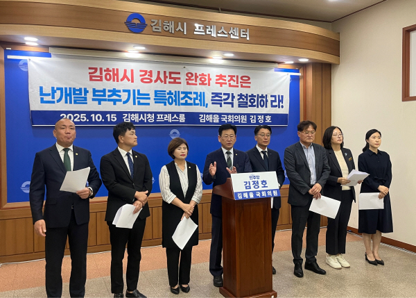 ´õºÒ¾î¹ÎÁÖ´ç ±èÁ¤È£ ±¹È¸ÀÇ¿ø°ú ±èÇØ½ÃÀÇ¿øµéÀÌ 15ÀÏ ±èÇØ½Ãû ÇÁ·¹½º¼¾ÅÍ¿¡¼ °æ»çµµ ¿ÏÈ Á¶·Ê °³Á¤¾È öȸ¸¦ Ã˱¸ÇÏ´Â ±âÀÚȸ°ßÀ» Çϰí ÀÖ´Ù.